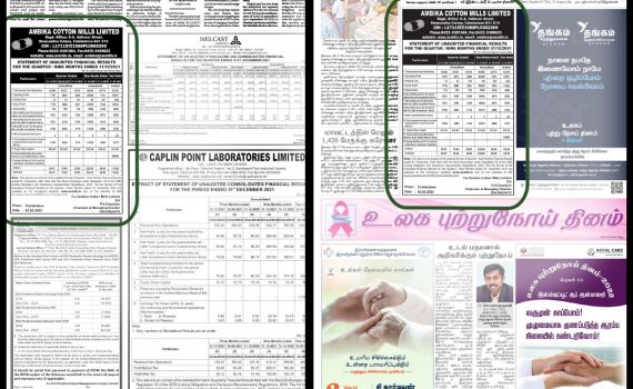 The Unaudited Financial Results for the third Quarter ended 31.12.2021 was published in Dinamani and […]