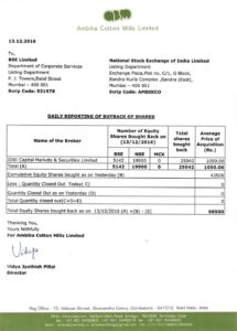 Corporate Announcements General Notice Buyback of Shares – Daily Report 13.12.2016 Published 13 December 2016 Buyback of Shares – Daily Report 13.12.2016
